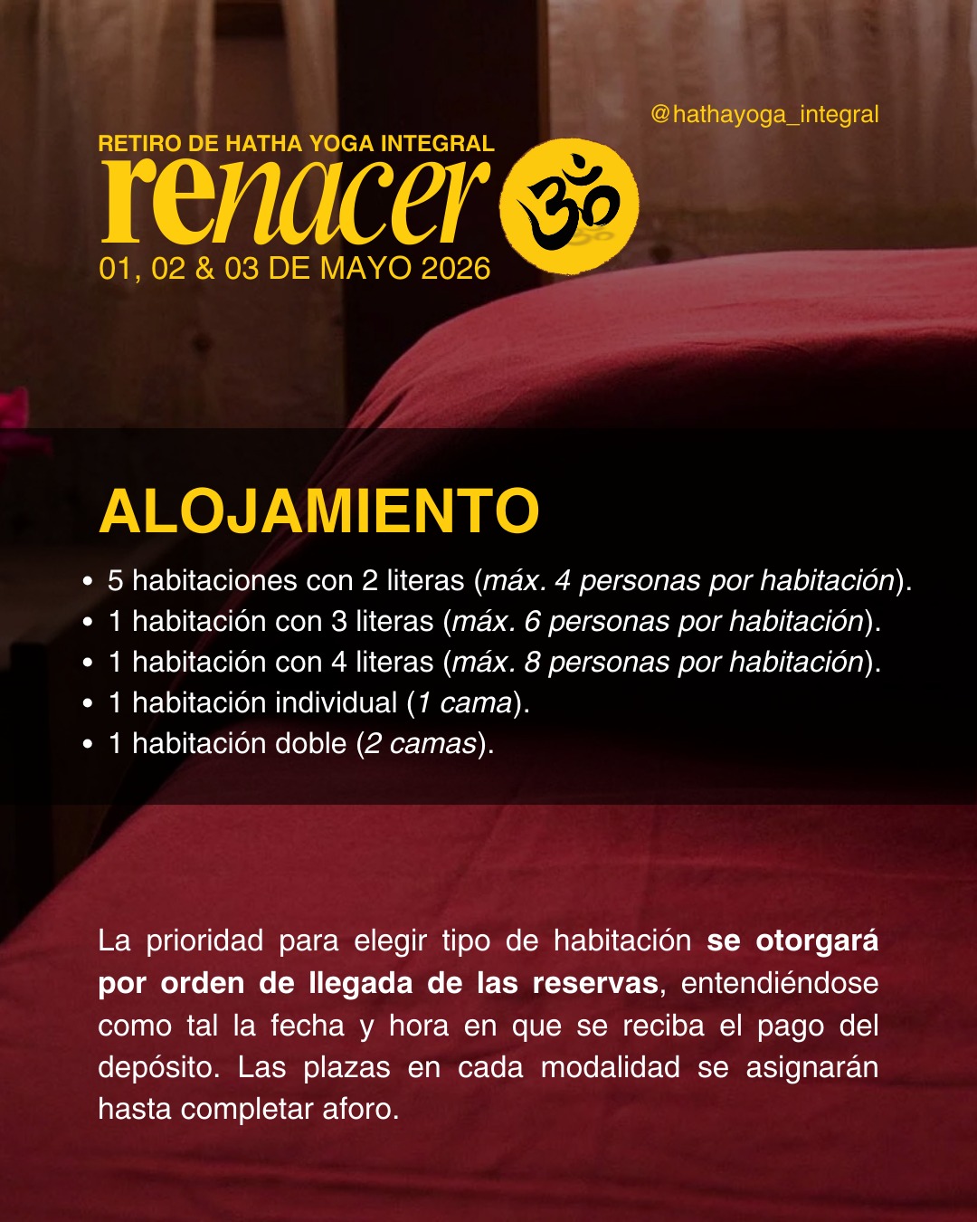 La prioridad para elegir tipo de habitación se otorgará por orden de llegada de las reservas, entendiéndose como tal la fecha y hora en que se reciba el pago del depósito. Las plazas en cada modalidad se asignarán hasta completar aforo.