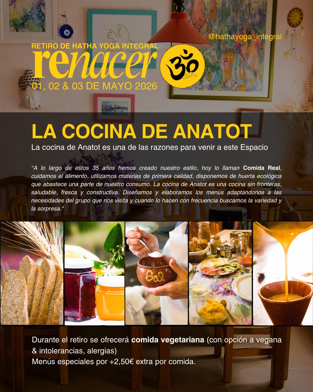 Durante el retiro se ofrecerá comida vegetariana (con opción a vegana & intolerancias, alergias)