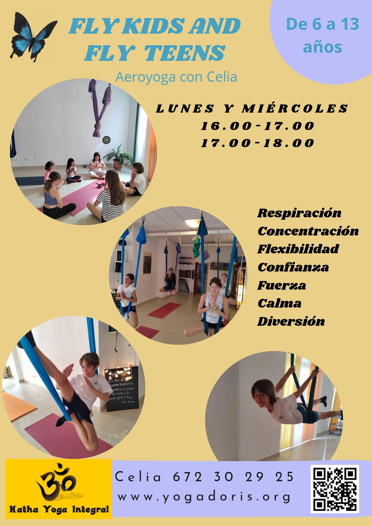 El Yoga Aéreo es una forma maravillosa de introducir el yoga en los niños y niñas o añadir una práctica divertida y respetuosa a los que ya practican. En estas clases, no sólo se fortalece el cuerpo y se trabaja la flexibilidad, si no que va mucho más allá. Creando un ambiente de confianza y seguridad, ayudamos a los alumnos a trabajar su autoestima y autoconcepto, sentirse libres y plenos, fuertes por fuera y por dentro, a ser ellos mismos y desarrollarse como niños, adolescentes y adultos felices.